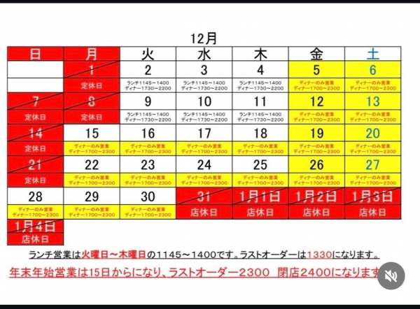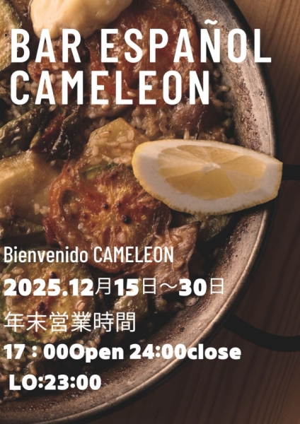 BAR ESPAÑOL CAMELEON 年末営業のお知らせいつもご利用ありがとうございます。カメレオンの年末営業は下...