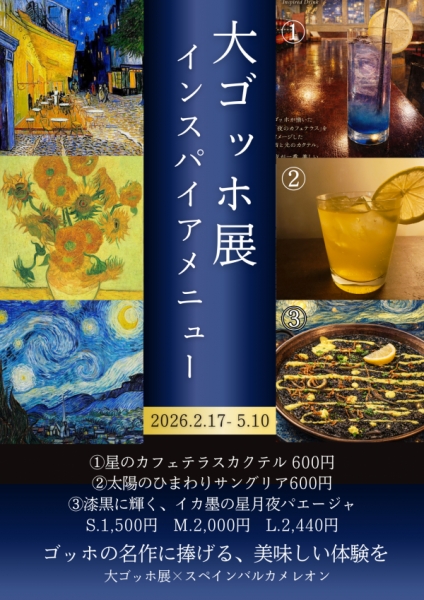 福島県立美術館で開催される大ゴッホ展にあわせて、福島市の人気店スペインバル カメレオンでは、ゴッホ...